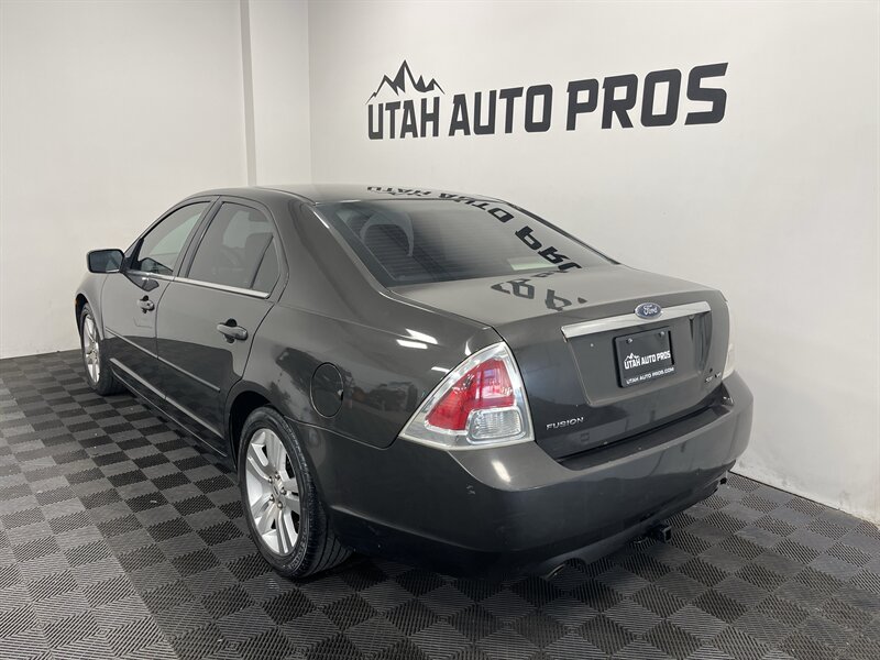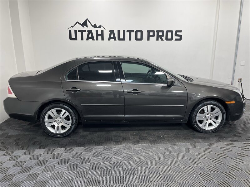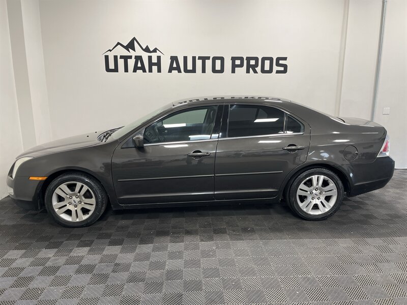 LEATHER INTERIOR!!! This is a great Ford Fusion SEL in a dark bronze metallic with a tan leather interior. It is sitting on a set of sporty alloy wheels and is equipped with remote entry, upgraded Kenwood stereo, bluetooth phone and audio, cruise control, automatic transmission, power windows, clean title, runs and drives great. We tend to sell our vehicles quickly so please call and verify availability before heading in. You can check out the rest of our great inventory online at www.utahautopros.com