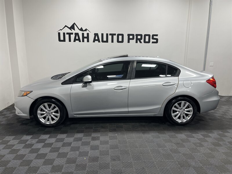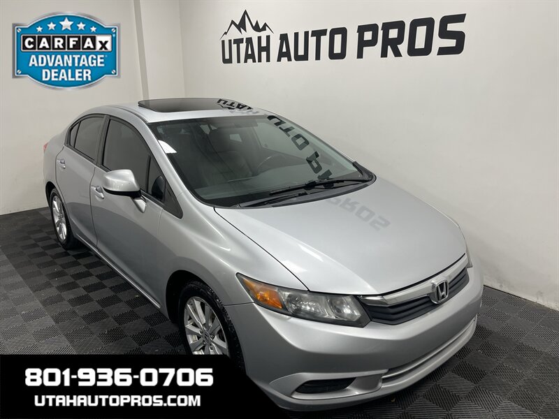 SPORTY EX-L!!! This is a sporty Honda Civic EX-L in a light silver metallic with tinted windows and a gray leather interior. It is nicely equipped with a sunroof, automatic transmission, remote entry, eco drive mode for great fuel mileage, heated seats, on wheel audio controls, cruise control, sporty alloy wheels, good tires, navigation, bluetooth phone and audio, clean title, runs and drives great. We tend to sell our vehicles quickly so please call and verify availability before heading in. You can check out the rest of our great inventory online at www.utahautopros.com