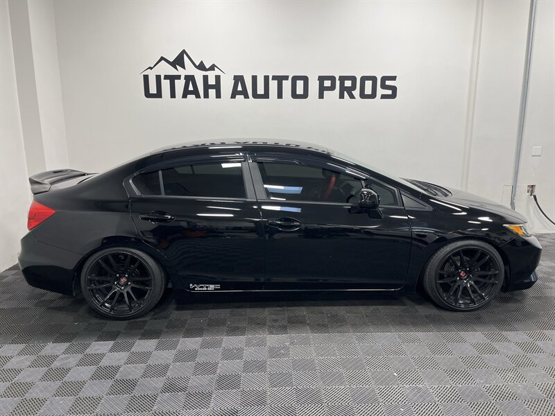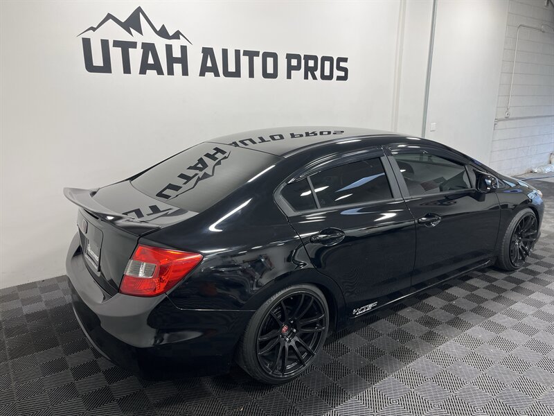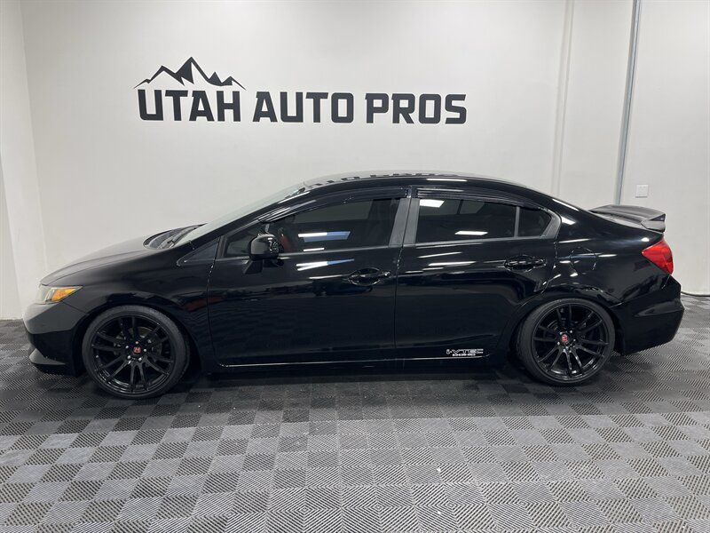 SPORTY CIVIC!!! This is a one sporty Honda Civic in a brilliant black with black wheels and an upgraded suspension that sits lower than stock. It is equipped with tinted windows, remote entry, rear spoiler, upgraded touch screen display, on wheel audio controls, automatic transmission, cruise control, eco drive mode, clean title, runs and drives great. We tend to sell our vehicles quickly so please call and verify availability before heading in. You can check out the rest of our great inventory online at www.utahautopros.com