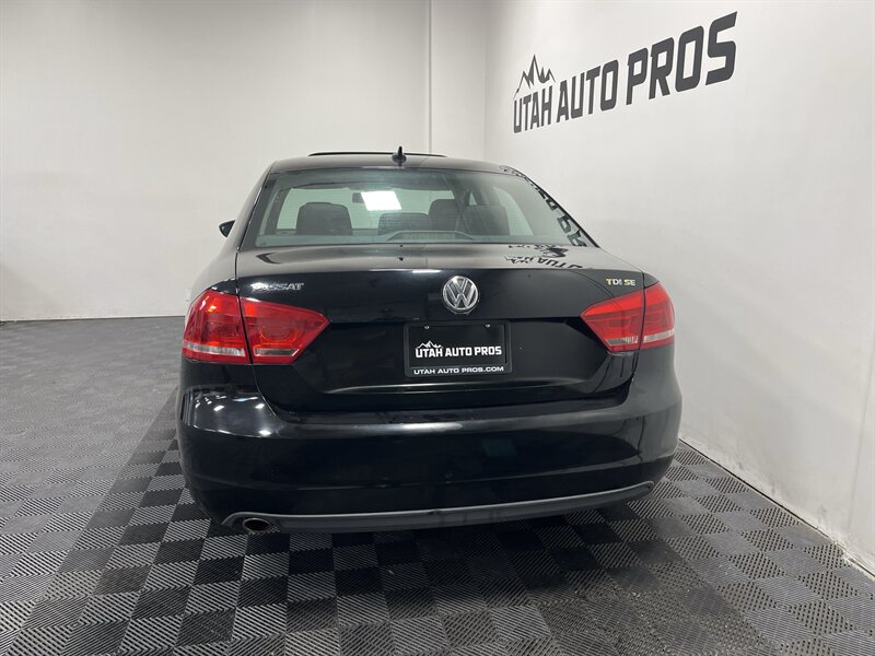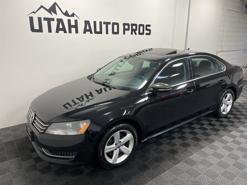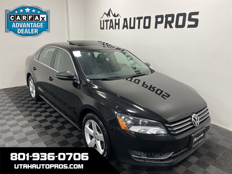DIESEL, GREAT FUEL MILEAGE!!! This is a very nice looking Volkswagen Passat in a brilliant black with sporty five star wheels and a black leather interior. It is nicely equipped with a sunroof, large touch screen display, bluetooth phone and audio, heated seats, sporty silver interior trim, on wheel audio controls, cruise control, remote entry, clean title, runs and drives great. We tend to sell our vehicles quickly so please call and verify availability before heading in. You can check out the rest of our great inventory online at www.utahautopros.com