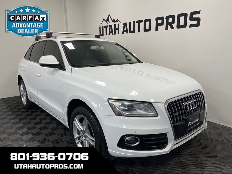 AUDI Q5 PREMIUM PLUS!!! This is a sporty Audi Q5 Premium Plus in a brilliant white with tinted windows and a tan leather interior. It is sitting on a set of sport alloy wheels and is equipped with navigation, backup camera, push button start, bluetooth phone and audio, roof racks, remote entry, heated seats, Bang & Olufsen stereo system, power lift gate, dark wood trim, on wheel audio controls, cruise control, clean title, runs and drives great. We tend to sell our vehicles quickly so please call and verify availability before heading in. You can check out the rest of our great inventory online at www.utahautopros.com