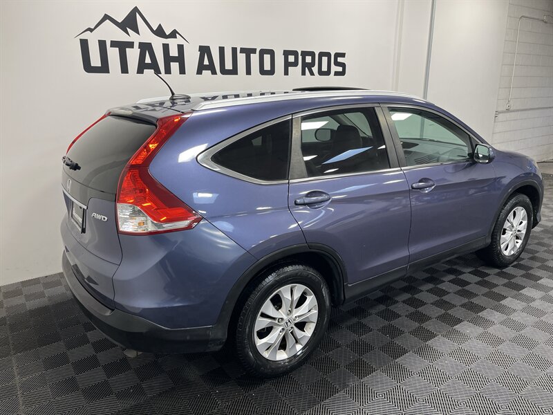 LOADED, ALL WHEEL DRIVE!!! This is a very nicely equipped Honda CRV EX-L in a light bluet metallic with tinted windows and a gray leather interior. It is equipped with a sunroof, backup camera, bluetooth, navigation system, heated seats, power adjustable drivers seat, remote entry, on wheel audio controls, cruise control, sporty alloy wheels, freshly polished headlights, clean title, runs and drives great. We tend to sell our vehicles quickly so please call and verify availability before heading in. You can check out the rest of our great inventory online at www.utahautopros.com