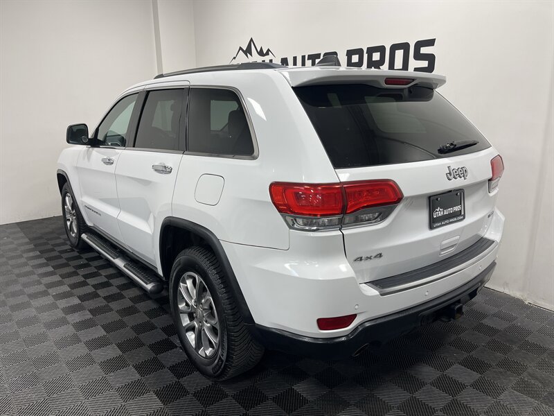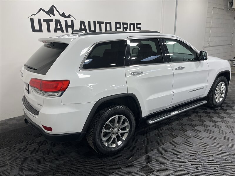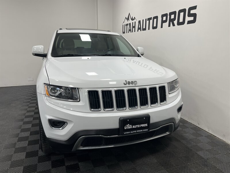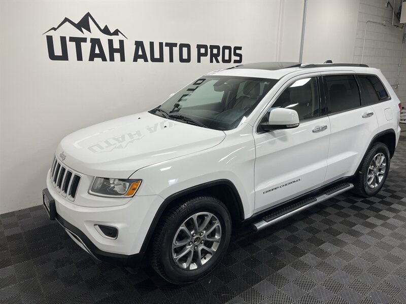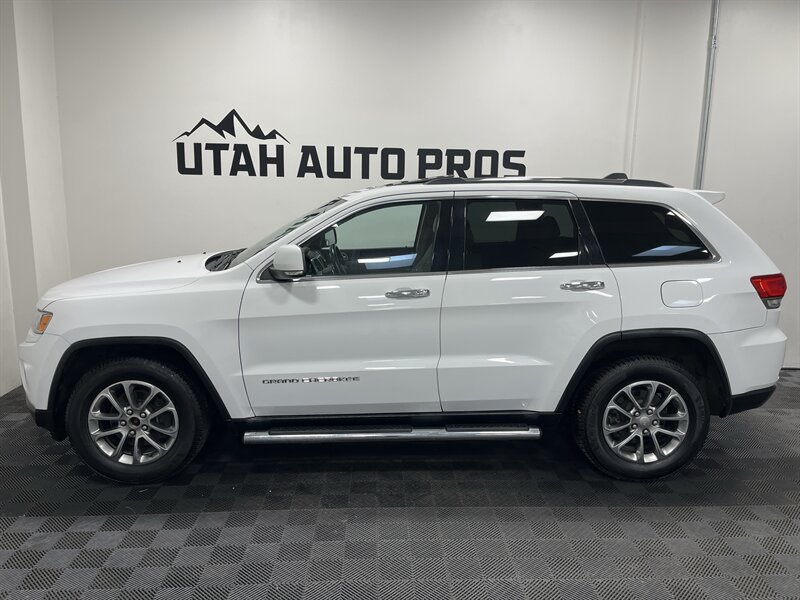 LOADED GRAND CHEROKEE!!! This Limited Jeep Grand cherokee looks great in a brilliant white with tinted windows and a tan leather interior. It is loaded with remote start, navigation, backup camera, heated seats, heated steering wheel, rear heated seats, sunroof, large touch screen display, bluetooth phone and audio, xenon headlights, power lift gate, running boards, push button start, on wheel audio controls, cruise control, roof rails, great looking alloy wheels, good tires, clean title, runs and drives great. We tend to sell our vehicles quickly so please call and verify availability before heading in. You can check out the rest of our great inventory online at www.utahautopros.com
