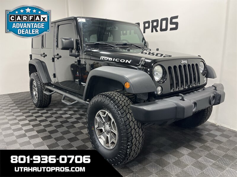WRANGLER UNLIMITED RUBICON!!! This is one great looking Jeep Wrangler Rubicon that is sitting on a lift and brand new tires. It is nicely equipped with running boards, hard top, tinted windows, navigation system, overhead sound bar, leather interior, heated seats, remote entry, electronic sway bar disconnects, axle lock, clean title, runs and drives great. We tend to sell our vehicles quickly so please call and verify availability before heading in. You can check out the rest of our great inventory online at www.utahautopros.com
