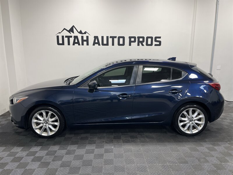 LOADED MAZDA3 HATCHBACK!!! This is loaded Mazda3 Touring in a midnight blue with a black leather interior. It is loaded with a Bose sound system, backup camera, navigation system, Skyactiv technology, heated seats, bluetooth phone and audio, power adjustable drivers seat, cruise control, paddle shifters, on wheel audio controls, heads up display, sporty alloy wheels, sporty silver interior trim, push button start, sporty alloy wheels, clean title, runs and drives great. We tend to sell our vehicles quickly so please call and verify availability before heading in. You can check out the rest of our great inventory online at www.utahautopros.com