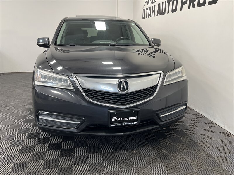 LOADED MDX!!! This is a great looking Acura MDX all wheel drive in a dark gray metallic with tinted windows and a black leather interior. It is nicely equipped with a sunroof, backup camera, push button start, three rows of seating, xenon headlights, navigation system, power lift gate, dark wood trim, bluetooth phone and audio, on wheel audio controls, cruise control, heated seats, great looking wheels, clean title, runs and drives great. We tend to sell our vehicles quickly so please call and verify availability before heading in. You can check out the rest of our great inventory online at www.utahautopros.com