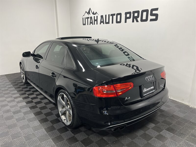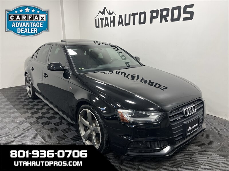 AUDI A4 S LINE!!! This is a sporty Audi A4 S Line in a brilliant black with tinted windows and a black leather interior. It is sitting on a set of S4 wheels and is equipped with comfortable sport seats, backup camera, sunroof, heated seats, navigation system, push button start, Bang & Olufsen stereo system, bluetooth phone and audio, sporty silver interior trim, on wheel audio controls, paddle shifters, cruise control, remote entry, clean title, runs and drives great. We tend to sell our vehicles quickly so please call and verify availability before heading in. You can check out the rest of our great inventory online at www.utahautopros.com