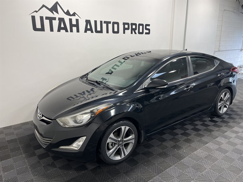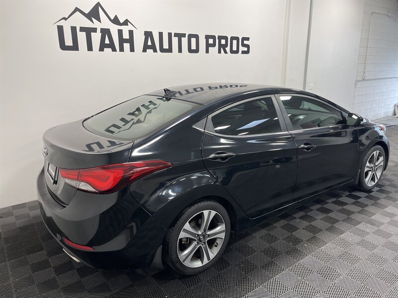 LOADED ELANTRA SPORT!!! This is a great looking Elantra Sport in a brilliant black with tinted windows and tan leather interior. It is sitting on a set of sport alloy wheels and is equipped with a push button start, power adjustable drivers seat, backup camera, bluetooth, heated seats, sporty silver interior trim, eco drive mode, cruise control, on wheel audio controls, clean title, runs and drives great. We tend to sell our vehicles quickly so please call and verify availability before heading in. You can check out the rest of our great inventory online at www.utahautopros.com