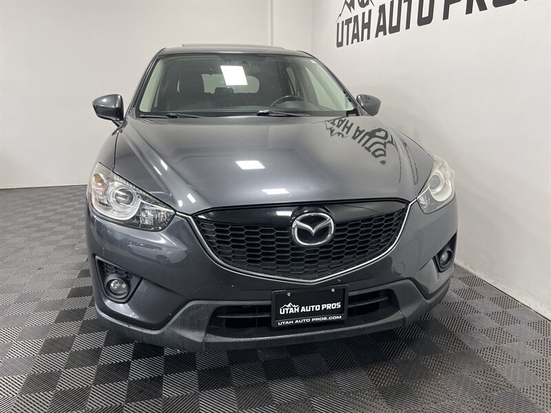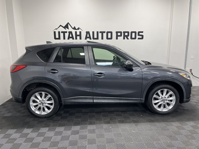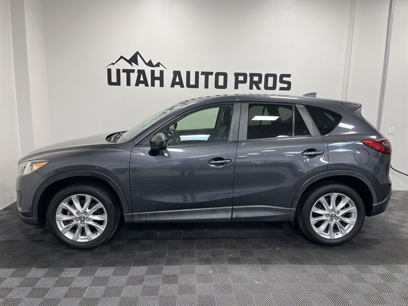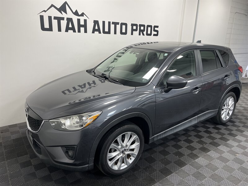 ALL WHEEL DRIVE, GRAND TOURING!!! This is a loaded up Mazda CX-5 Grand Touring in a dark gray metallic with tinted windows and a black leather interior. Some of the features include a Bose sound system, backup camera, push button start, heated seats, alloy wheels, Skyactiv technology, sunroof, xenon headlights, bluetooth phone and audio, cruise control, remote entry, blind spot monitor, power adjustable drivers seat, clean title, runs and drives great. We tend to sell our vehicles quickly so please call and verify availability before heading in. You can check out the rest of our great inventory online at www.utahautopros.com