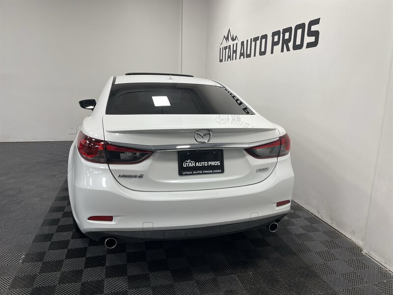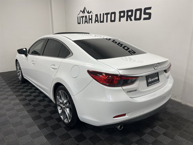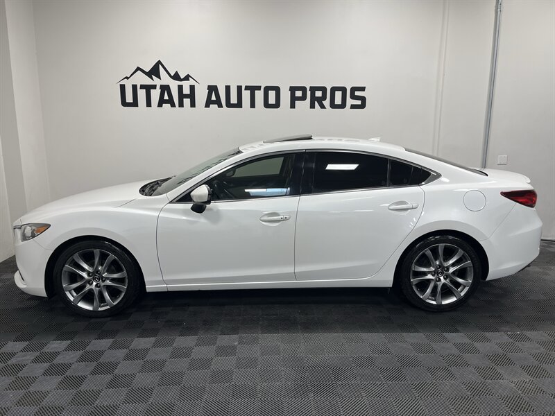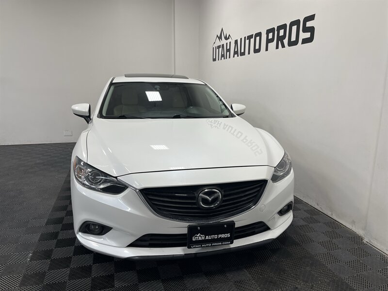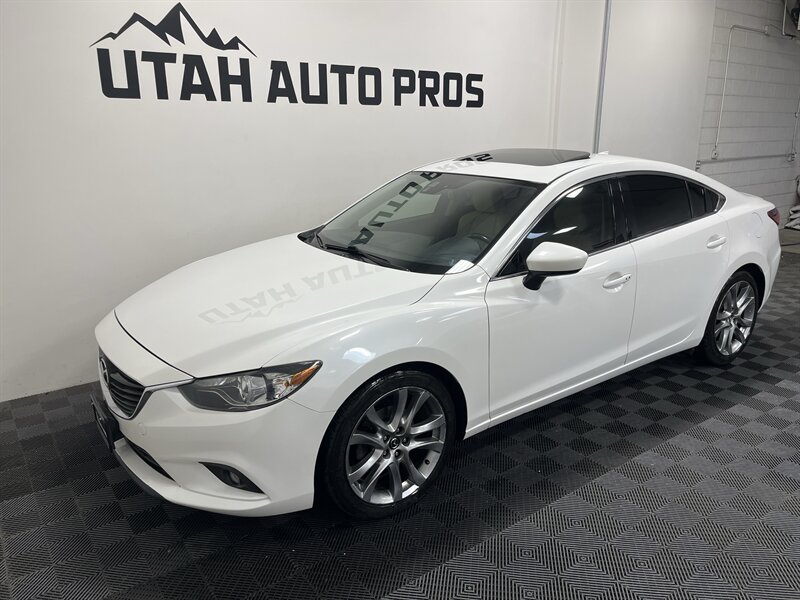 LOADED MAZDA6 GRAND TOURING!!! This is a very nice Mazda6 Grand Touring in a brilliant white with tinted windows and a beige leather interior. It is nicely equipped with premium wheels, sunroof, backup camera, bluetooth phone and audio, on wheel audio controls, cruise control, blind spot monitor, push button start, heated seats, Bose sound system, power seats, xenon headlights, dual climate controls, clean title, runs and drives great. We tend to sell our vehicles quickly so please call and verify availability before heading in. You can check out the rest of our great inventory online at www.utahautopros.com