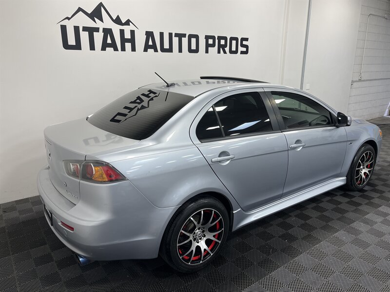 SPORTY LANCER ES!!! This is a sporty Mitsubishi Lancer ES in a light silver metallic with tinted windows and a black interior. It is sitting on a set of upgraded black and machined wheels with red accents, great tires, and is equipped with a sunroof, bluetooth phone and audio, on wheel audio controls, cruise control, remote entry, cold air intake, sporty silver interior trim, automatic transmission, clean title, runs and drives great. We tend to sell our vehicles quickly so please call and verify availability before heading in. You can check out the rest of our great inventory online at www.utahautopros.com