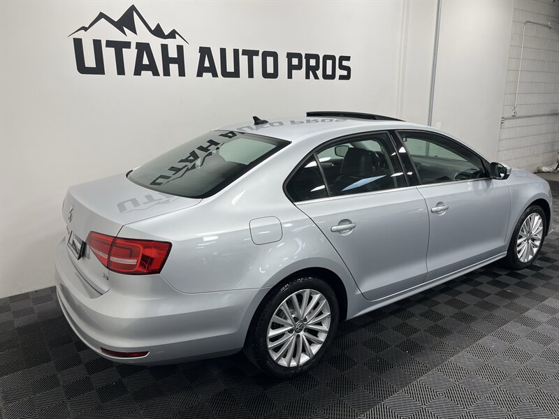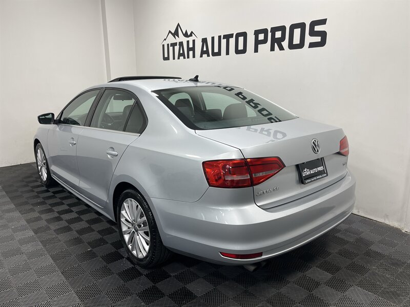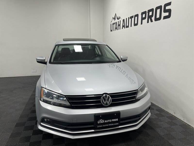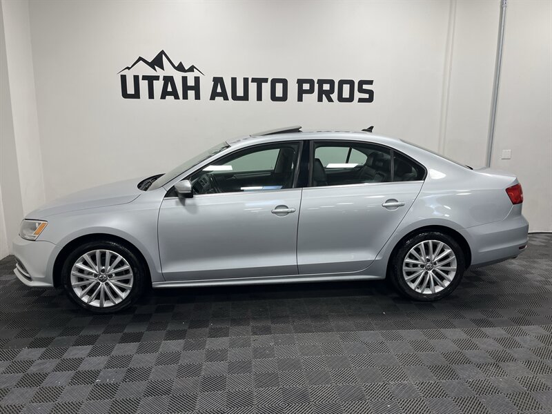 LOADED JETTA SE!!! This is a sporty Jetta that is loaded up with all of the most sought after upgrades. It is a light silver metallic with tinted windows and a black leather interior. It is equipped with a sunroof, backup camera, navigation system, bluetooth, heated seats, sporty silver interior trim, sport alloy wheels, good tires, on wheel audio controls, cruise control, push button start, clean title, runs and drives great. We tend to sell our vehicles quickly so please call and verify availability before heading in. You can check out the rest of our great inventory online at www.utahautopros.com