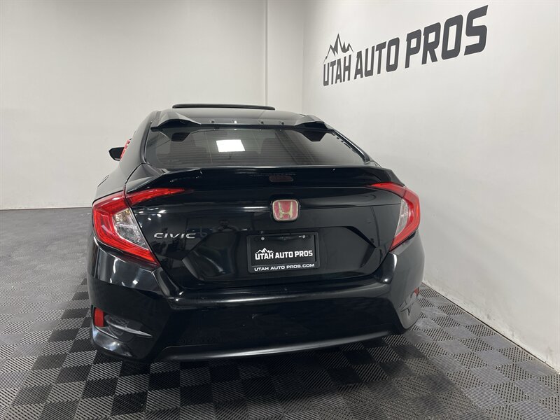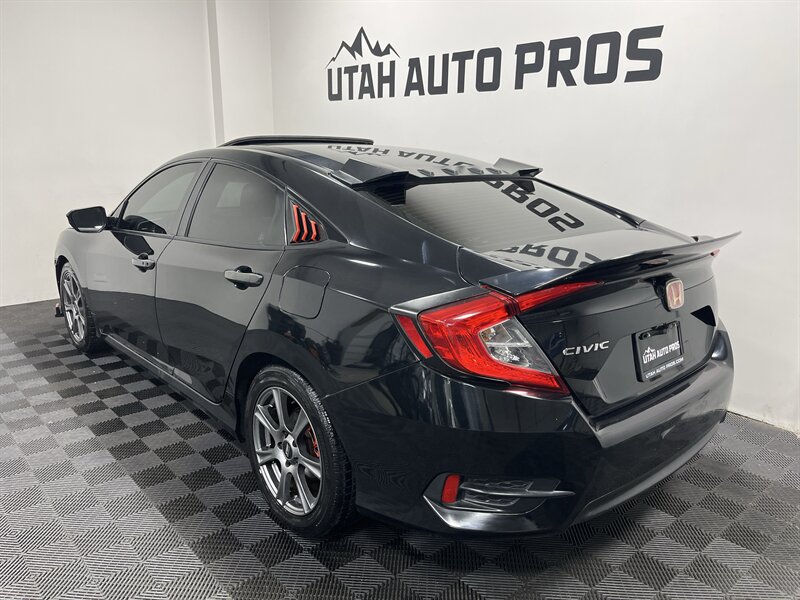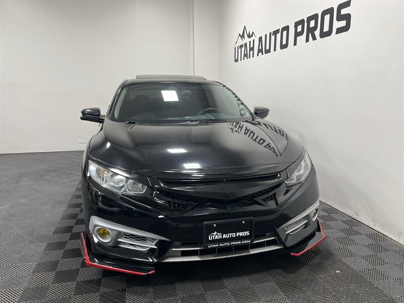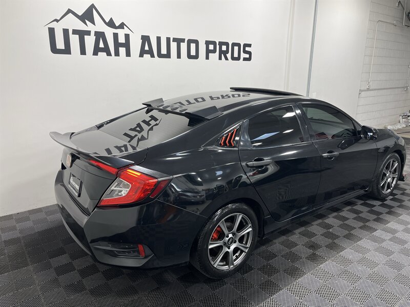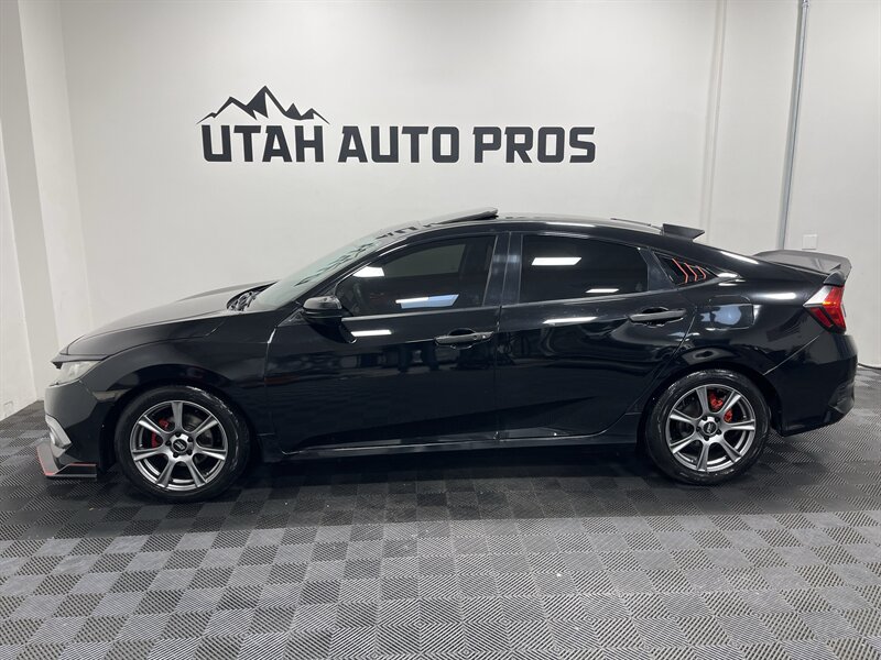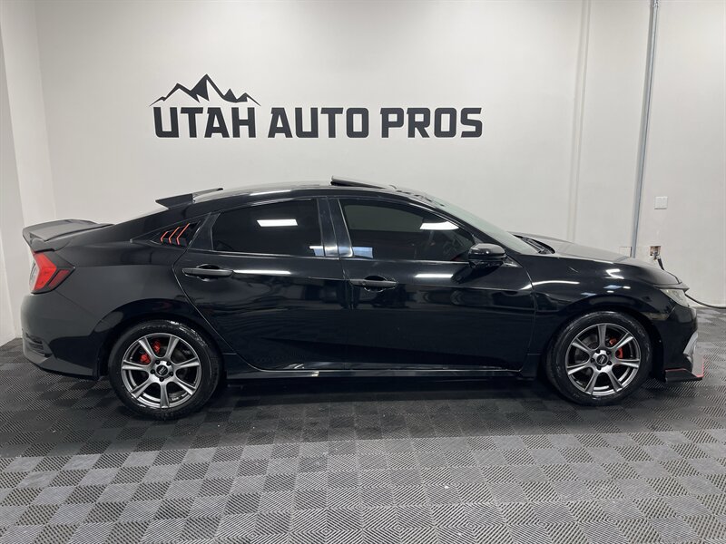 SPORTY CIVIC EX!!! This is one sporty Honda Civic in a brilliant black with tinted windows and a black interior. It is sitting on a set of upgraded charcoal gray wheels and is equipped with a sunroof, sporty red interior trim, body kit, rear spoiler, upgraded touch screen stereo, backup camera, push button start, remote entry, fog lamps, xenon headlights, automatic transmission, clean title, runs and drives great. We tend to sell our vehicles quickly so please call and verify availability before heading in. You can check out the rest of our great inventory online at www.utahautopros.com