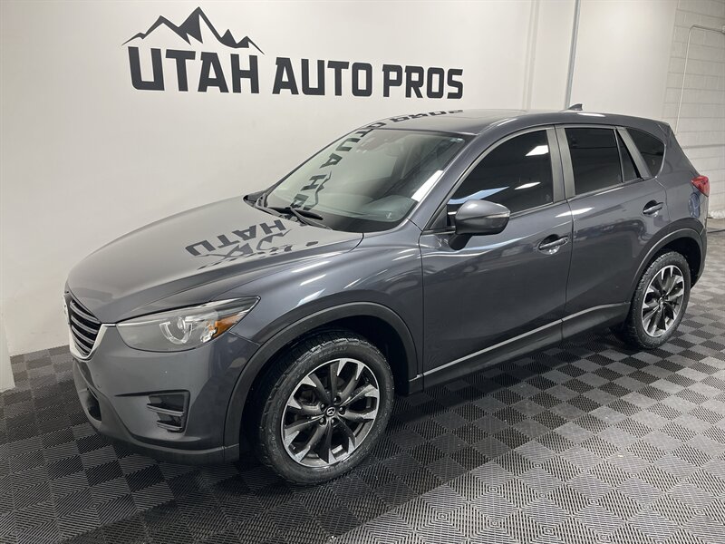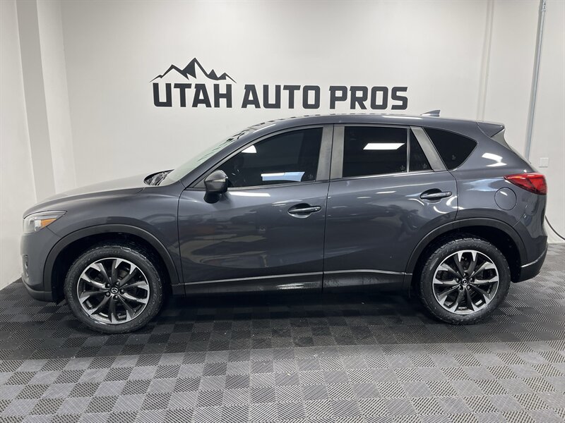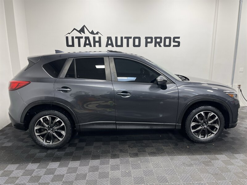 ALL WHEEL DRIVE, LOADED!!! This is a very nice Mazda CX-5 Grand Touring in a dark gray metallic with tinted windows and a black leather interior. It is nicely equipped with a sunroof, heated seats, Bose sound system, navigation, bluetooth phone and audio, backup camera, blind spot alert, push button start, on wheel audio controls, cruise control, power adjustable drivers seat, xenon headlights, Skyactiv technology, clean title, runs and drives great. We tend to sell our vehicles quickly so please call and verify availability before heading in. You can check out the rest of our great inventory online at www.utahautopros.com