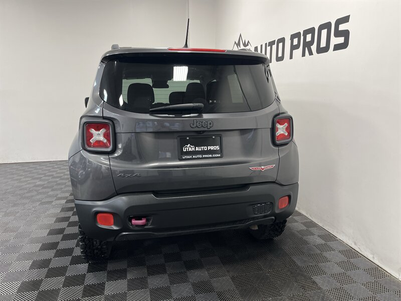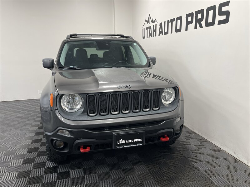 1 OWNER TRAILHAWK EDITION!!! This is a great looking Jeep Renegade Trailhawk edition in a gray metallic with tinted windows and a black interior. It is sitting on a set of great looking all terrain tires and is equipped with heated seats, heated steering wheel, push button start, touch screen display, backup camera, bluetooth phone and audio, remote entry, great looking wheels, red interior accents, various terrain modes such as snow mode or mud. This Jeep has a clean title and runs and drives great. We tend to sell our vehicles quickly so please call and verify availability before heading in. You can check out the rest of our great inventory online at www.utahautopros.com