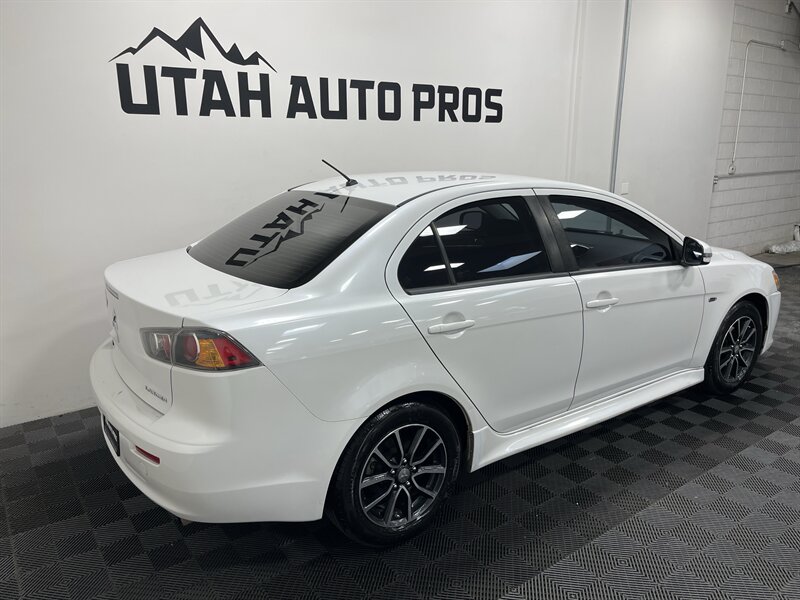 SPORTY LANCER!!! This is one sporty Mitsubishi Lancer in a brilliant white with tinted windows and a black interior. It is very nicely equipped with a large touch screen display, backup camera, automatic transmission, bluetooth phone and audio, remote entry, cruise control, on wheel audio controls, sporty black and machined wheels, awesome tires, sporty silver interior trim, clean title, runs and drives great. We tend to sell our vehicles quickly so please call and verify availability before heading in. You can check out the rest of our great inventory online at www.utahautopros.com