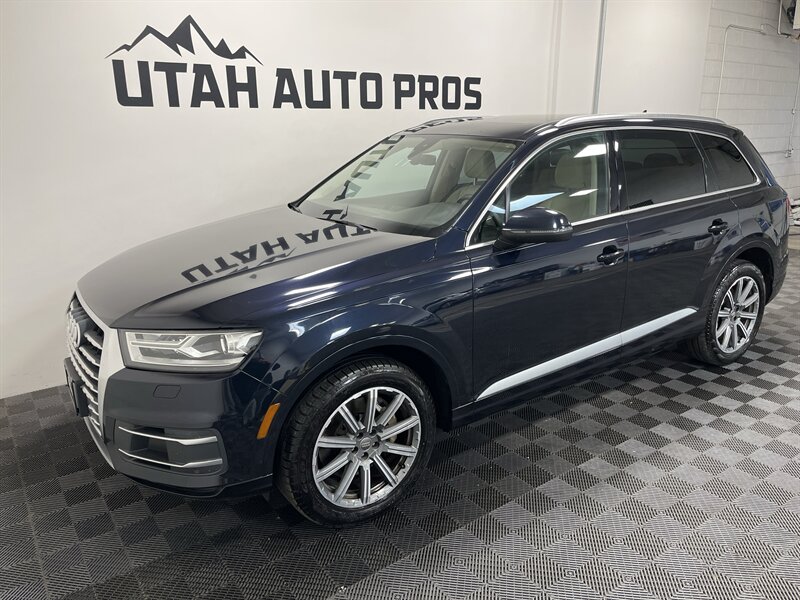 AUDI Q7 PREMIUM PLUS!!! This is a great looking Audi Q7 Premium Plus in a midnight blue with tinted windows and a tan leather interior. It is nicely equipped with a panoramic sunroof, backup camera, blind spot alert, Bose sound system, heated seats, dark wood trim, navigation system, dual climate controls, on wheel audio controls, cruise control, xenon headlights, power lift gate, bluetooth phone and audio, power folding third row, sporty alloy wheels, clean title, runs and drives great. We tend to sell our vehicles quickly so please call and verify availability before heading in. You can check out the rest of our great inventory online at www.utahautopros.com