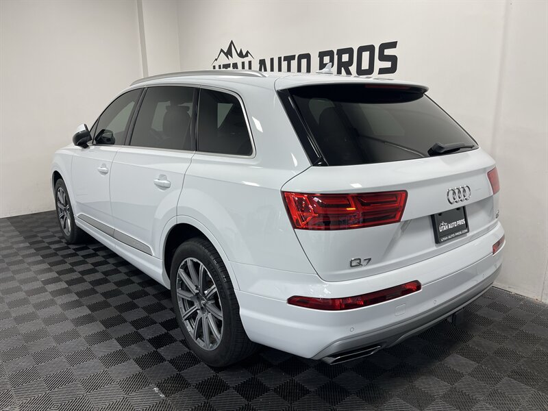 LOADED PREMIUM PLUS!!! This is a hard to find white on dark brown leather Audi Q7 Premium Plus with tinted windows. It is loaded with a panoramic sunroof, backup camera, Bose sound system, blind spot alert, xenon headlights, heated and cooled seats, heated steering wheel, navigation system, digital instrument cluster that also displays navigation, three rows of seating, power folding 3rd row, power lift gate, bluetooth phone and audio, sporty alloy wheels, Michelin tires, clean title, runs and drives great. We tend to sell our vehicles quickly so please call and verify availability before heading in. You can check out the rest of our great inventory online at www.utahautopros.com