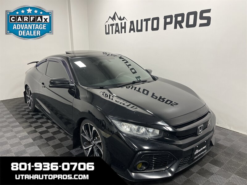 HONDA CIVIC Si!!! This is a sporty Honda Civic Si in a brilliant black with tinted windows and a black interior. It is equipped with a fun to drive manual transmission, sunroof, backup camera, heated seats, bluetooth phone and audio, remote entry, cruise control, push button start, rear spoiler, sport wheels, clean title, runs and drives great. We tend to sell our vehicles quickly so please call and verify availability before heading in. You can check out the rest of our great inventory online at www.utahautopros.com