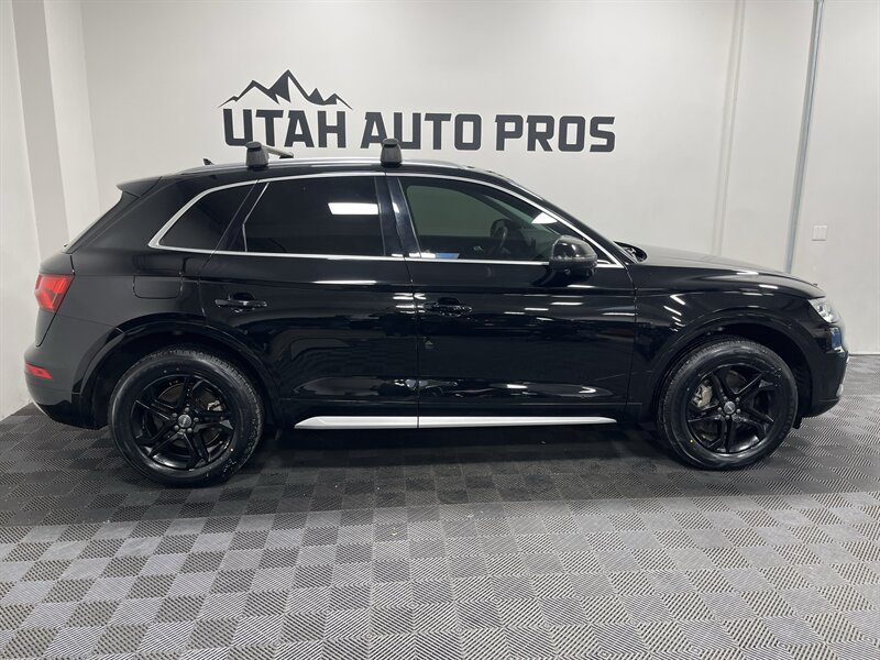 BLACKED OUT Q5!!! This Audi Q5 looks great in a brilliant black with tinted windows, gloss black wheels, and roof racks. It is sitting on a set of brand new tires and is equipped with xenon headlights, bluetooth phone and audio, Audi side alert, backup camera, dark wood trim, push button start, dual climate controls, paddle shifters, on wheel audio controls, cruise control, power lift gate, clean title, runs and drives great. We tend to sell our vehicles quickly so please call and verify availability before heading in. You can check out the rest of our great inventory online at www.utahautopros.com