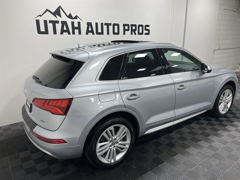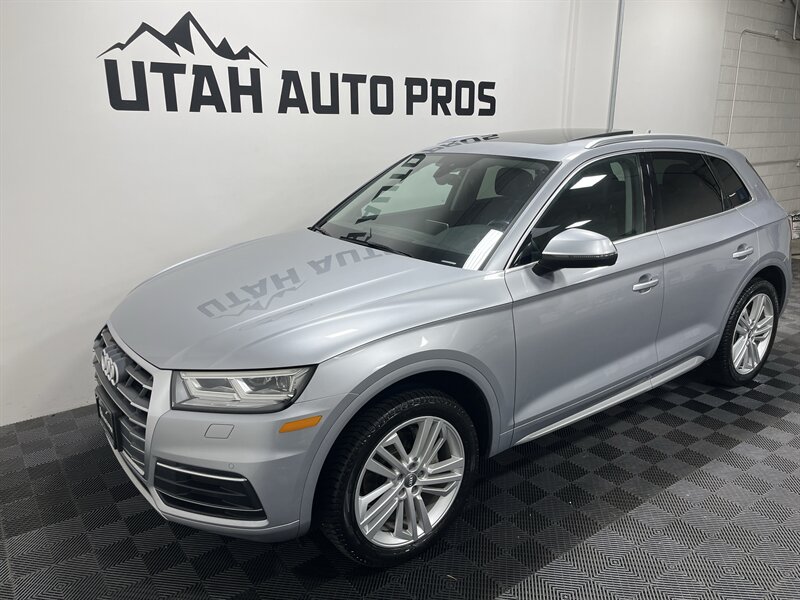 2019 Q5 PREMIUM PLUS!!! This is a loaded Audi Q5 Premium Plus in a light silver metallic with tinted windows and a black leather interior. It is loaded with a Bang & Olufsen stereo system, backup camera, push button start, xenon headlights, panoramic sunroof, navigation system, rear sun shades, heated and cooled seats, on wheel audio controls, cruise control, blind spot alert, power lift gate, comfortable sport seats, sporty alloy wheels, great tires, clean title, runs and drives great. We tend to sell our vehicles quickly so please call and verify availability before heading in. You can check out the rest of our great inventory online at www.utahautopros.com