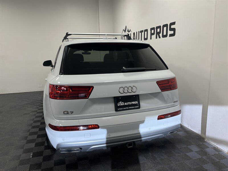 HARD TO FIND PRESTIGE!!! This is a loaded up Audi Q7 Prestige in a bright white with tinted windows and a tan leather interior. It is equipped with sport alloy wheels, good tires, panoramic sunroof, backup camera, xenon headlights, digital instrument cluster that displays navigation, backup camera, heated and cooled seats, parking sensors, Bose sound system, roof racks, power lift gate, power folding third row, push button start, dark wood trim, clean title, runs and drives great. We tend to sell our vehicles quickly so please call and verify availability before heading in. You can check out the rest of our great inventory online at www.utahautopros.com