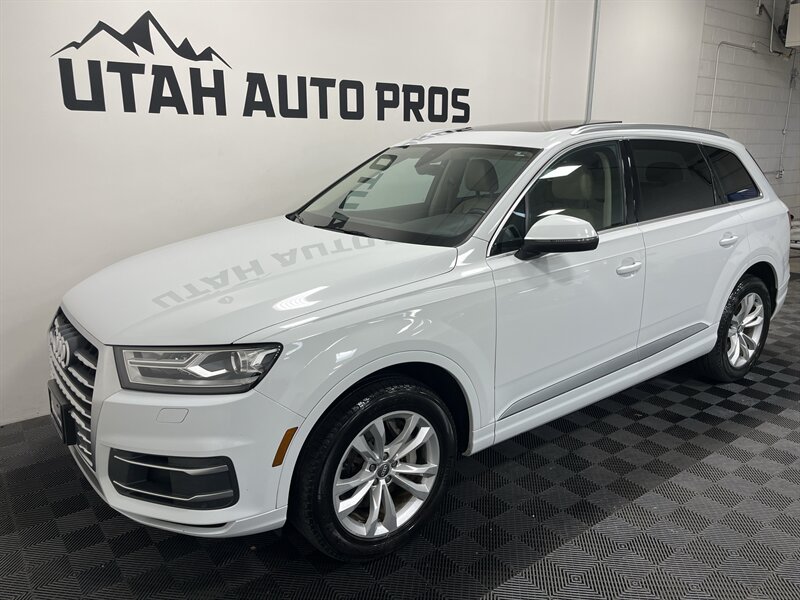NICELY EQUIPPED Q7!!! This Audi Q7 looks great in brilliant white with tinted windows and a tan leather interior. It is loaded with navigation, backup camera, panoramic sunroof, heated seats, dark wood trim, Audi side alert, Audi pre sense, xenon headlights, power lift gate, power folding third row, sporty alloy wheels, paddle shifters, on wheel audio controls, cruise control, clean title, runs and drives great. We tend to sell our vehicles quickly so please call and verify availability before heading in. You can check out the rest of our great inventory online at www.utahautopros.com