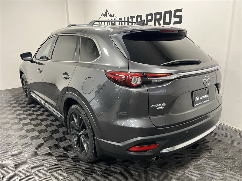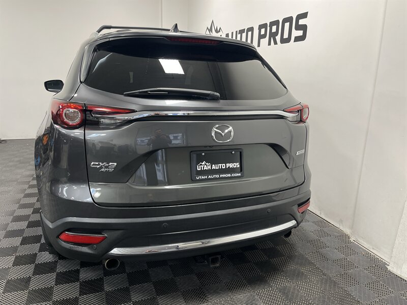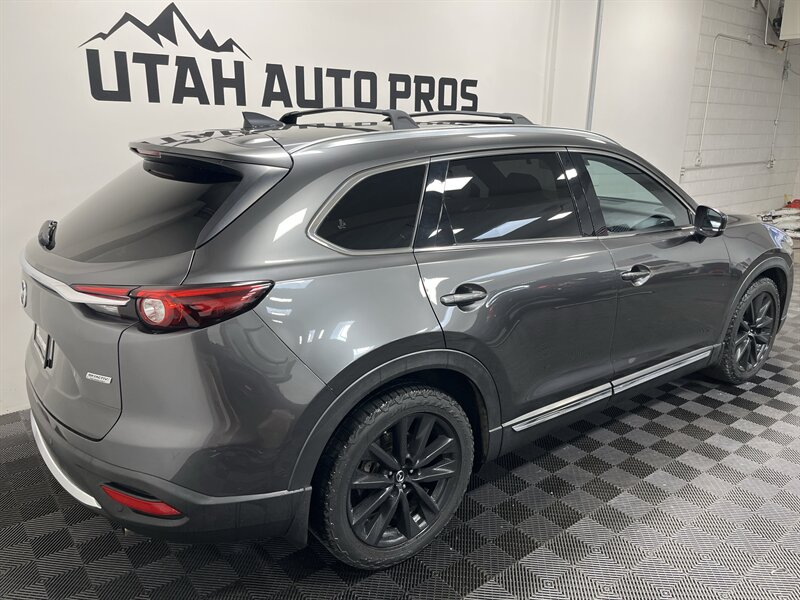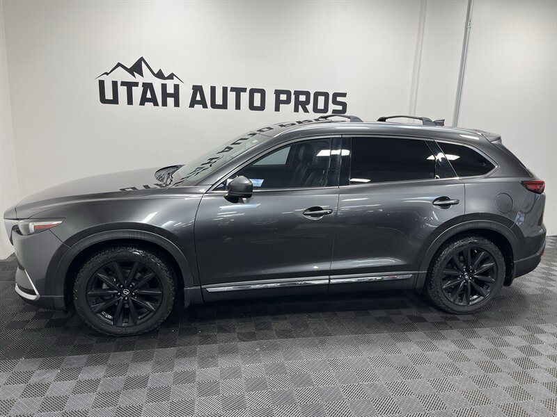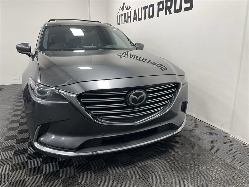 LOADED MAZDA CX-9!!! This Grand Touring Mazda CX-9 all wheel drive looks great in a dark gray metallic with tinted windows and gloss black wheels. It is loaded with navigation, 360 view camera, power lift gate, bluetooth phone and audio, heated and cooled seats, push button start, heads up display, lane departure alert, parking sensors, Bose sound system, adaptive cruise, on wheel audio controls, sunroof, roof rails with cross bars, three rows of seating, clean title, runs and drives great. We tend to sell our vehicles quickly so please call and verify availability before heading in. You can check out the rest of our great inventory online at www.utahautopros.com