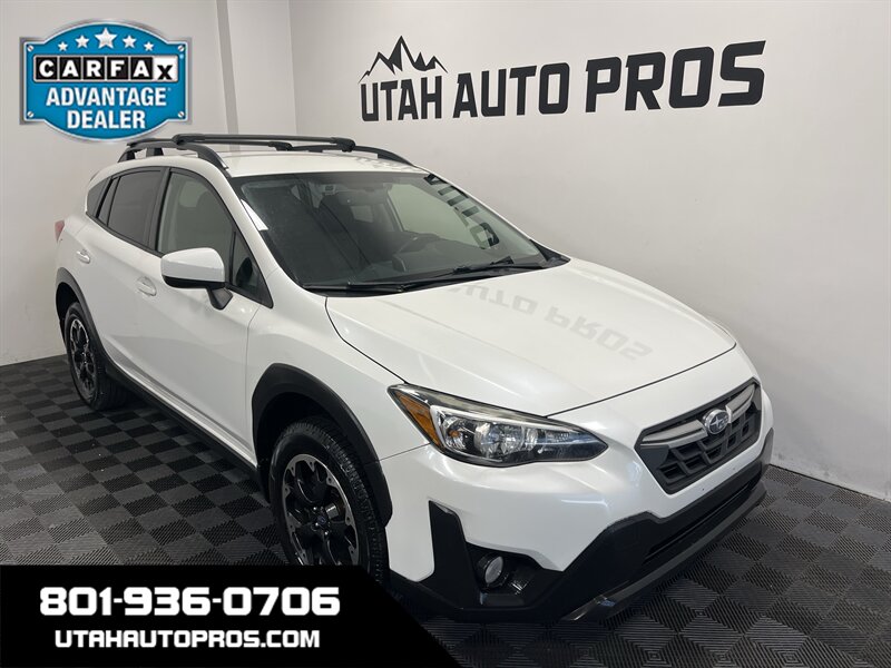 2021 CROSSTREK, EYESIGHT!!! This is a great looking Subaru Crosstrek in a bright white with tinted windows and a black and gray interior. It is nicely equipped with the Subaru Eyesight package, roof racks, heated seats, paddle shifters, Apple Carplay, backup camera, bluetooth phone and audio, touch screen display, adaptive cruise control, great looking wheels, good tires, clean title, runs and drives great. We tend to sell our vehicles quickly so please call and verify availability before heading in. You can check out the rest of our great inventory online at www.utahautopros.com